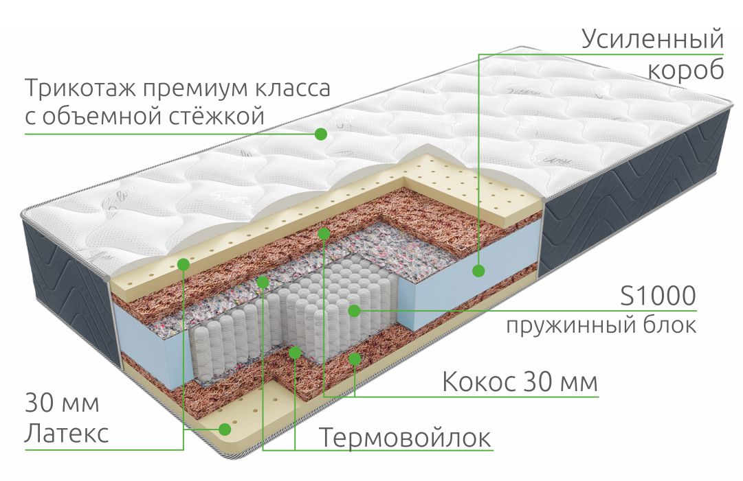 Ultima Medium — один из лучших матрасов фабрики VITA в коллекции Premium. Благодаря использованию ортопедического блока пружин S1000 “мультипакет”, индивидуальную поддержку получает каждый участок тела спящего. Короб по периметру усилен толстым слоем высокоэластичной пены. Остальные материалы имеют натуральное происхождение: