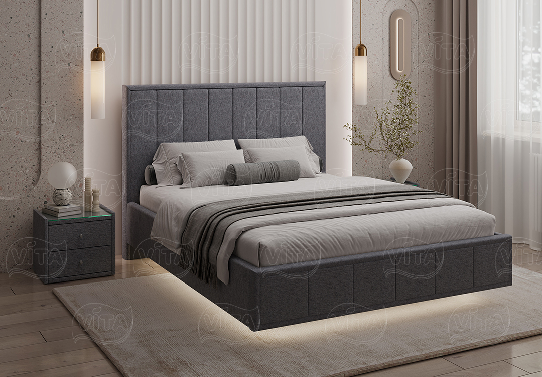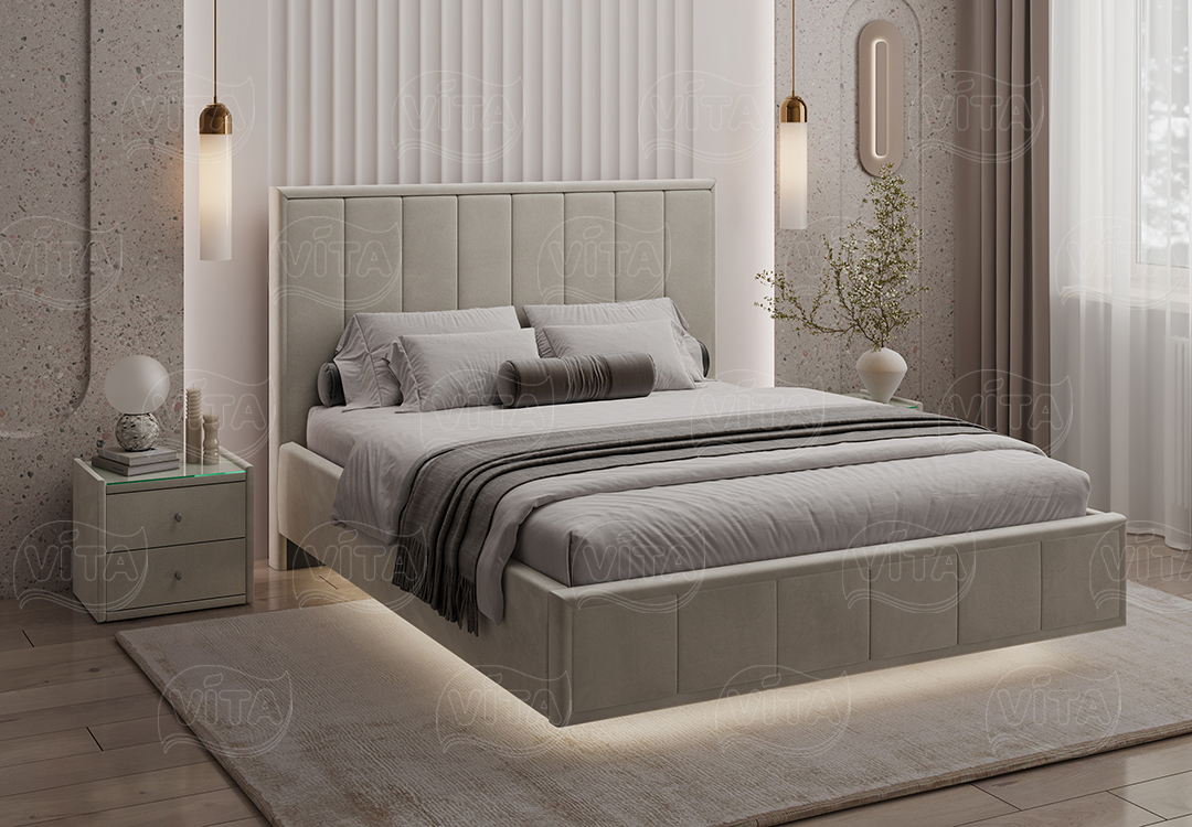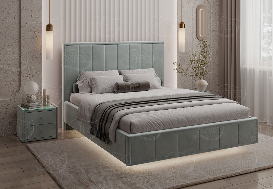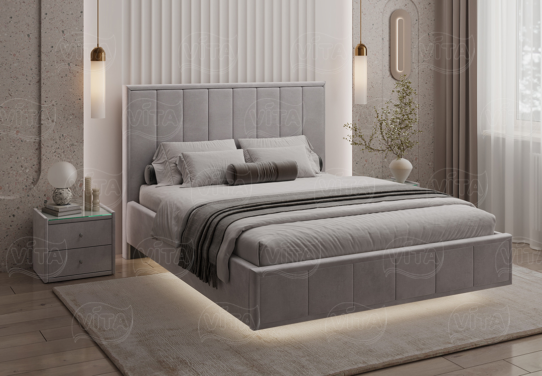 Кровать “Николь” парящая – воплощение стиля и роскоши. Вертикальная стежка на изголовье создаёт выразительный образ и визуально увеличивает пространство Вашей спальни по высоте.